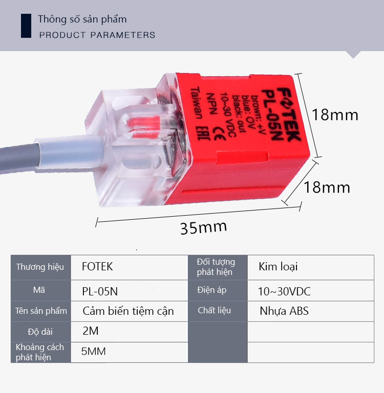 Khoảng cách phát hiện: 5mm