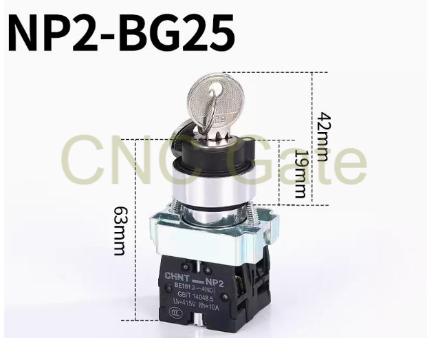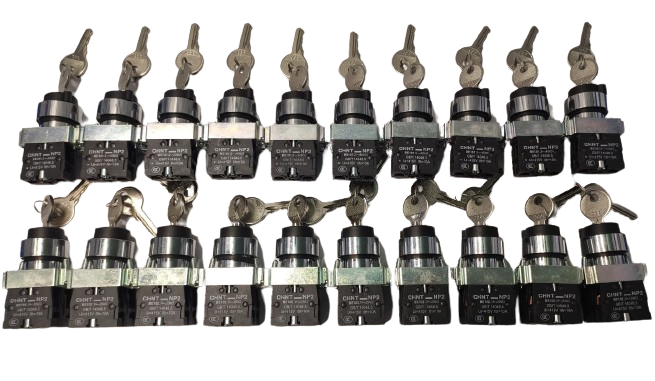 Có Khóa chìa, phải có chìa khóa mới đóng mở được nút. Khi xoay nút mở, có thể rút chìa khóa ra. Rất phù hợp cho chức năng đóng mở nguồn điện cho hệ thống