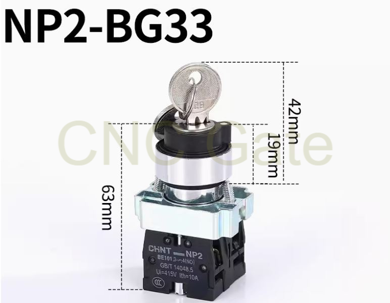 Có Khóa chìa, phải có chìa khóa mới đóng mở được nút. Khi xoay nút mở, có thể rút chìa khóa ra. Rất phù hợp cho chức năng đóng mở nguồn điện cho hệ thống