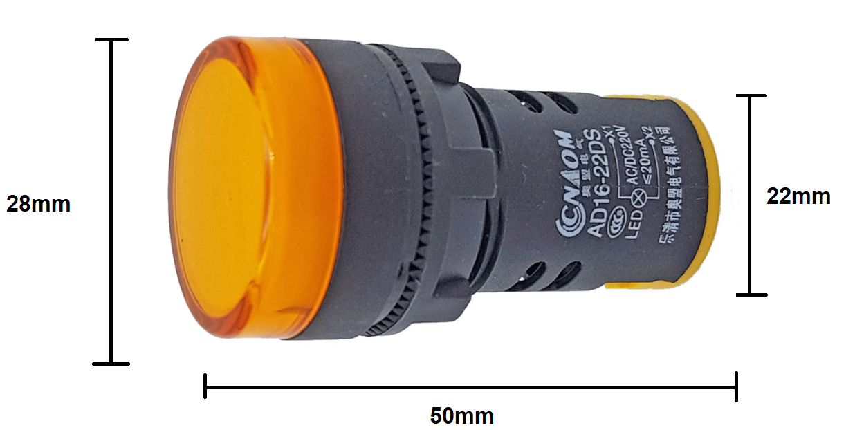 - Dễ dàng lắp đặt, thay thế :đèn báo có kích thước đường kính cắt lỗ 22mm, kích thước phổ biến nhất cho các loại nút bấm và đèn báo